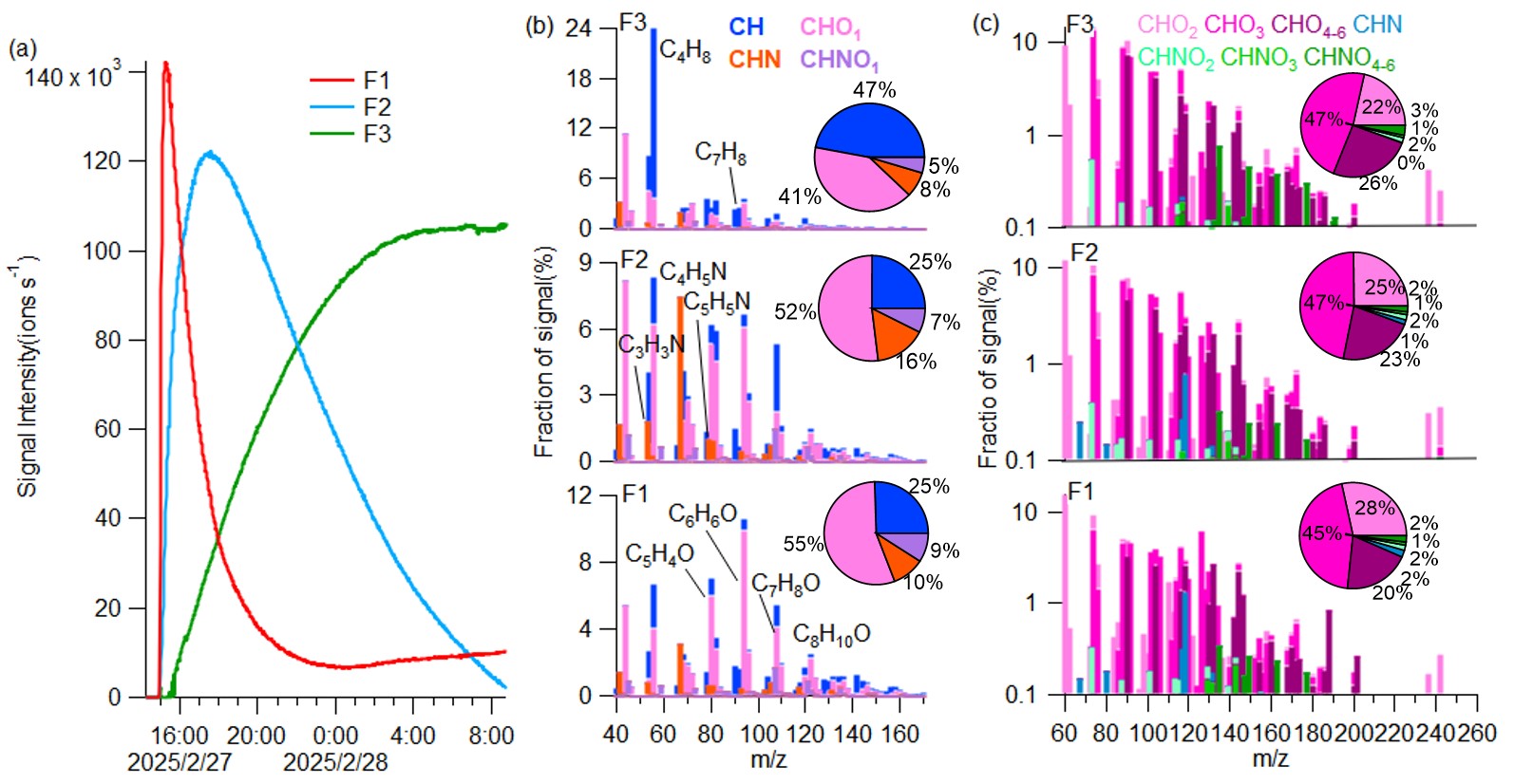 近日,开云登录入口手机版 孙业乐研究员团队利用高分辨率气溶胶质谱仪与质子转移反应/化学电离飞行时间质谱,分别在典型的室内环境和烟雾箱中,对三手烟释放的有机气溶胶(OA)和气态有机化合物进行了实时在线表征,并结合正矩阵因子分解法,解析了其动态演化过程及来源。