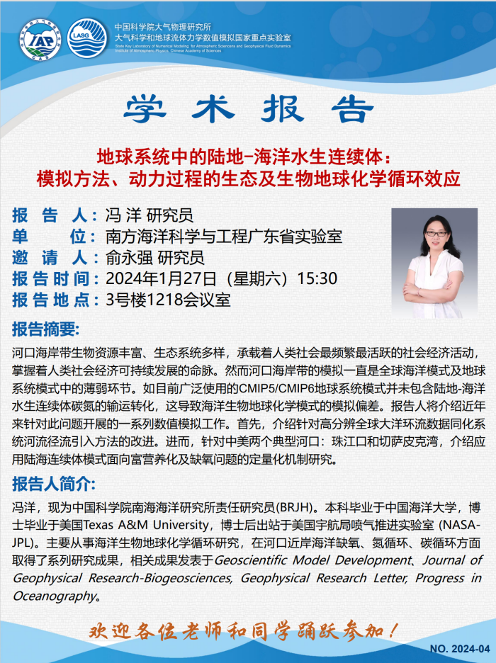 【1.27】地球系统中的陆地-海洋水生连续体:模拟方法、动力过程的生态及生物地球化学循环效应